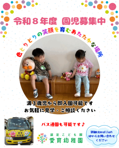 認定こども園愛育幼稚園では、4月入園と、満3歳児などの年度途中入園を受け付けています!