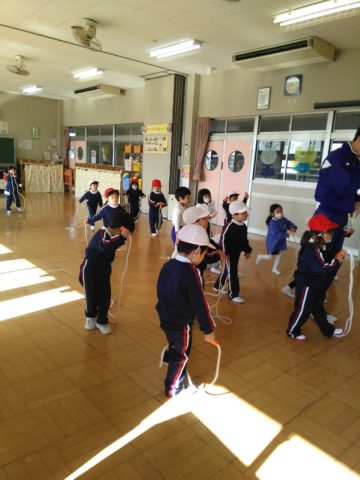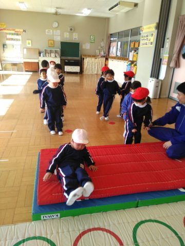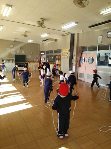りすぐみさんの体育教室は、準備体操、なわとび、マット運動をやりました。なわとびを結ぶ練習もしています。頑張りました\(^o^)/ りすぐみ