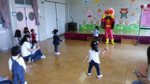 今日のコロちゃんクラブに、アンパンマンが来てくれました。握手したり、お写真を撮ったり、手遊びも一緒にやって、楽しかったですね。