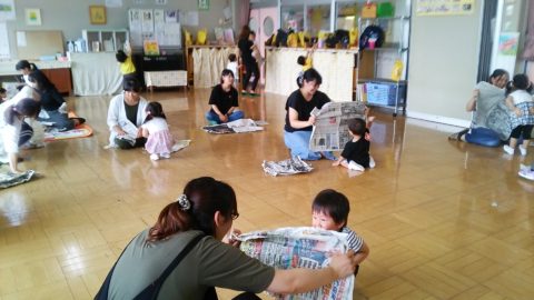 今日のコロちゃんクラブは、新聞紙を使って、ボールにしたり、アーンパンチで破いたり、花火に見立てて遊びました!6月生まれのお誕生会もありました