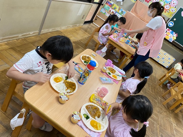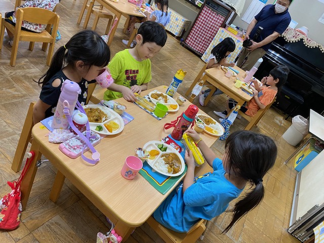 ご飯を食べます!おいしいカレーです(^_-)