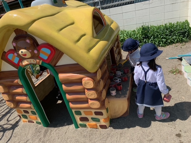 遊具で遊んだり、お家の中ではアイス屋さんをしていました♡