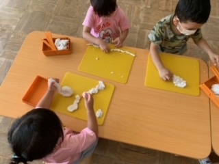 ひよこぐみ🐥園ブログ 2022年8月3日夏期保育中のひよこ組さんっ まずは2日の日の水遊びの様子です! ジョウロやバケツを使って楽しく遊んでます♪ つづいて3日の保育室での様子です❣️ みんなで粘土をしました! カタツムリを作っているそうです🐌 Facebook postLINE