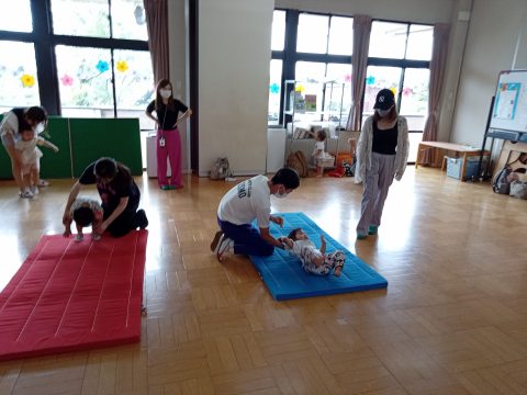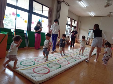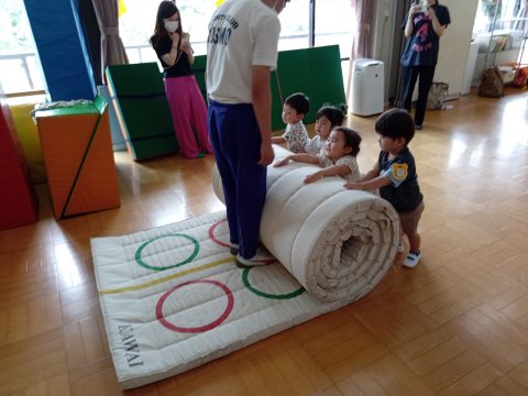 おいもゴロゴロ、丸の中をぴょんぴょん飛んで、でんぐり返しは、ちょっと難しかったかな?