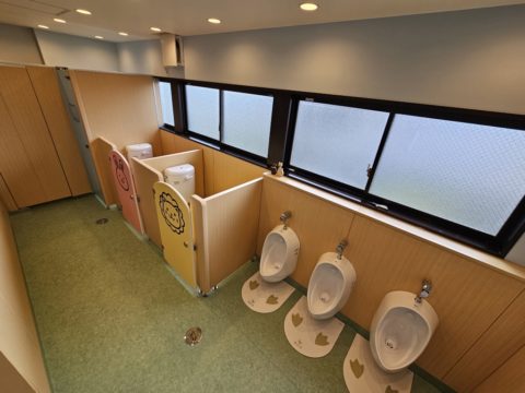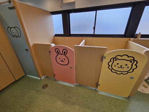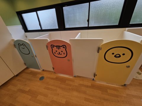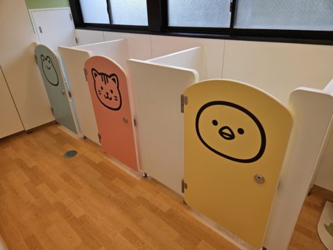 1階のひよこ組、りす組の子ども達が使うトイレはかわいらしく。