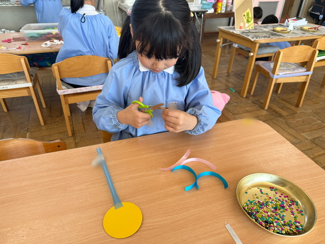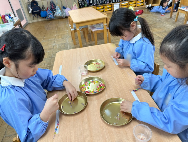 真剣な表情で取り組んでいます!紐に通す細かな作業もありましたがどれも楽しかったようです!!