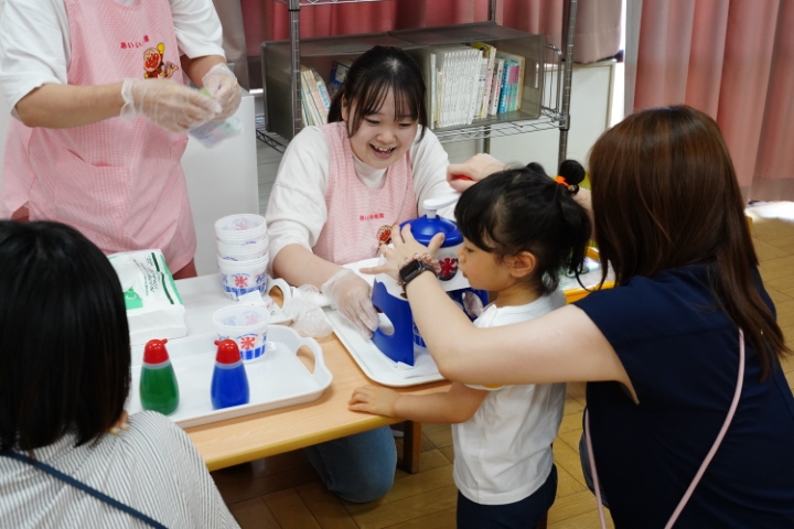 🍧かき氷コーナー🍿ポップコーン屋さん✋手作りうちわコーナー💫光るブレスレットプレゼント🦸‍♂️バイキンマン登場!など、楽しいイベント盛りだくさんのひとときでした😊