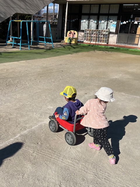 【ひよこぐみ🐥】外遊び☀️園ブログ 2025年12月10日太陽が出ていたので、みんなで外に出て元気よく遊びました! 外で遊べることを伝えると、子どもたちは「やったー!」とすごく喜んでいました✨️砂場遊びでは、お友達同士でお店屋さんごっこをしたりケーキを作ったりと一緒に遊びを楽しんでいました💕違うところでは、1人が荷台に乗ってそれをもう1人のお友達が押して遊んでいました。「わーい!」と、とっても楽しそうでした🥰また、三輪車に乗るのが上手になった子もいて、たくさんこげるようになりました!!また、天気がいい日にお外で遊ぼうね☺️ Facebook postLINE