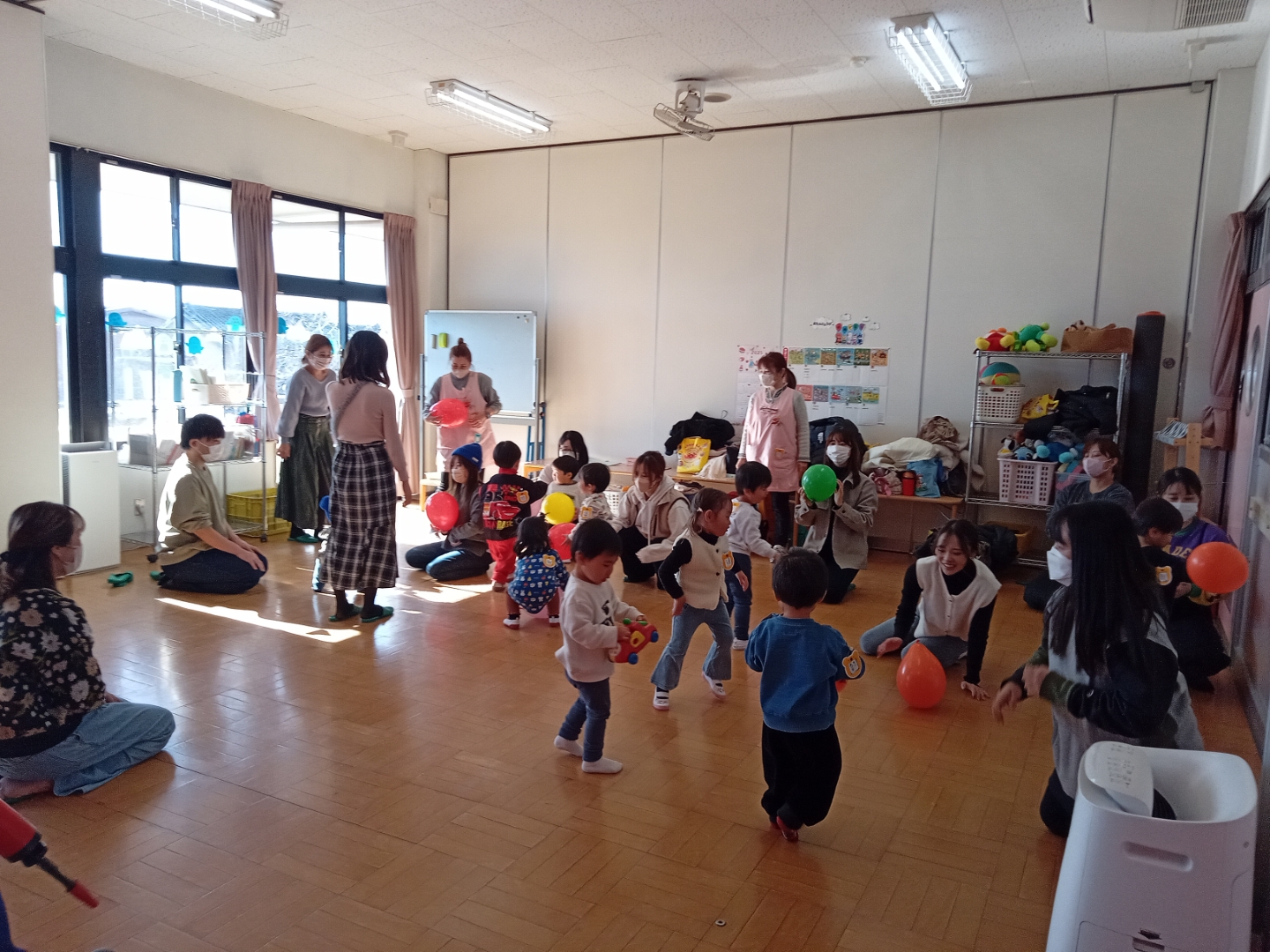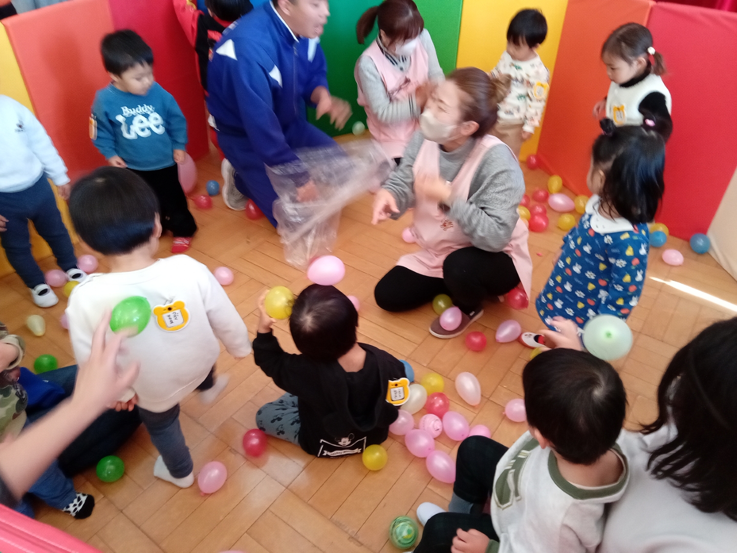 コロちゃんクラブ(2歳児以上:ふうせんで遊ぼう)園ブログ 2025年12月12日今日のコロちゃんクラブは、🎈風船を使って膨らませ、風をかけたり、結び目を引っ張って音をだしたりふってみたり、上に投げたり、いろいろ遊んだね😊 風船プールでは、静電気で風船が、くっついちゃて大慌てでしたね!12月生まれのお誕生会もありました🎂 Facebook postLINE