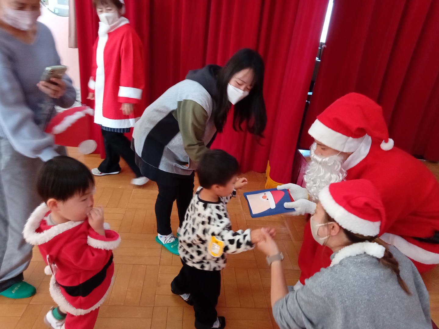 コロちゃんクラブ(クリスマス会)園ブログ 2025年12月22日12/19(金)のコロちゃんクラブは、クリスマス会🎄 かわいいさんたさんいっぱい🎅 しろいおひげのサンタサンからプレゼントもらってにっこりw(゚o゚)w Facebook postLINE