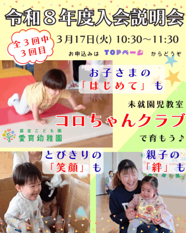いよいよ来週は第3回目(最終回)のコロちゃんクラブ入会説明会です!