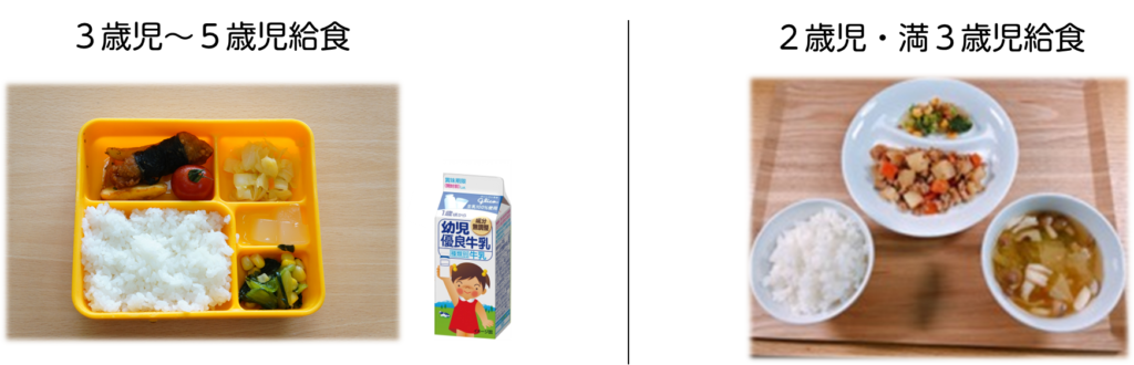 毎日、自園で調理したごはん付きの給食が出ます。